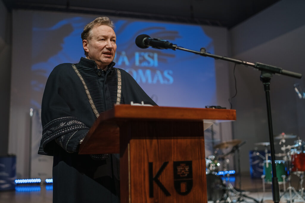 KU Vice-Rector for Studies dr. Sonata Mačiulskytė called the cohort leaving the University today an exceptional one. “You are the graduates who have undergone the greatest transformation of the University in the course of your studies: you remember the studies before the pandemic, when we used to learn in classrooms all together, while after the outbreak of the pandemic, we experienced distance learning as one of the biggest challenges and transformations. It significantly affected the study process. We have always encouraged students to be active participants in the teaching / learning process, and therefore we want to believe that today’s graduates who will close the door of the University will have somewhat different, but not inferior skills and knowledge,” said dr. Mačiulskytė.