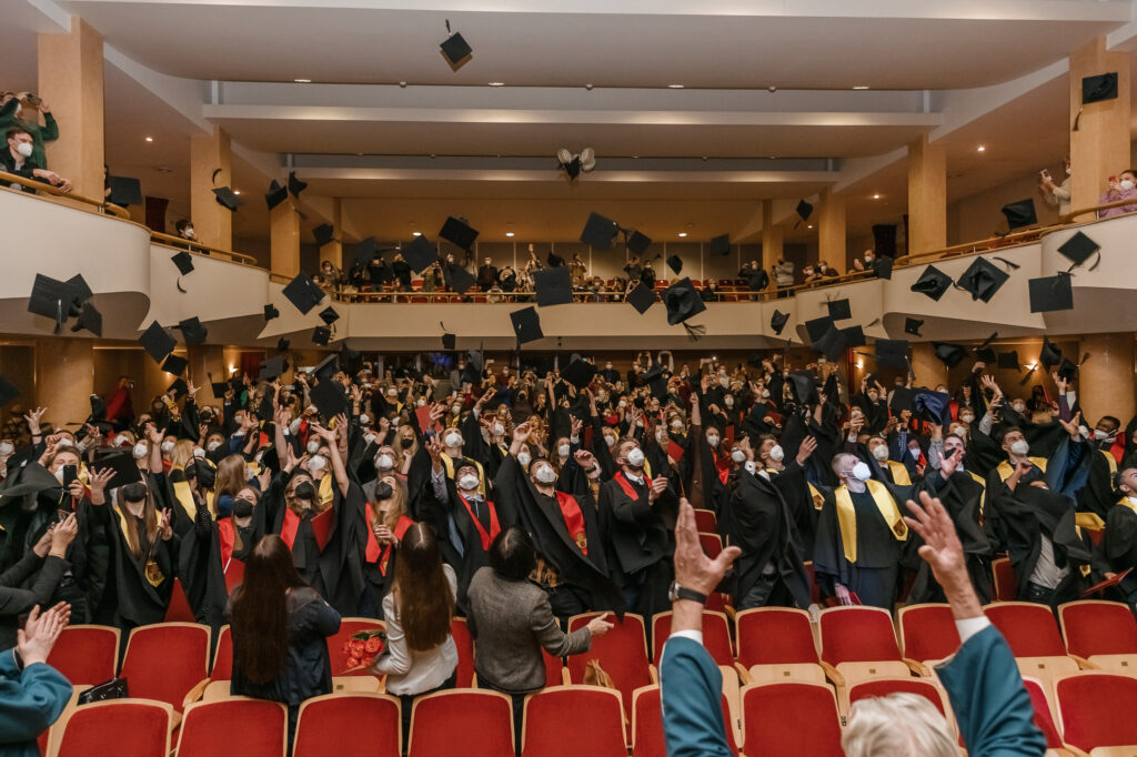 “You are the lockdown cohort who never had a chance to sit in the classroom during those one and a half years of studies, and new, distance teaching methodologies were tested on you. I do hope we shall not have another cohort experiencing this … “, Dean of the Faculty of Social Sciences and Humanities prof. dr. Rimantas Balsys extended his best wishes to the graduates who were planning to continue their studies in the next cycle.