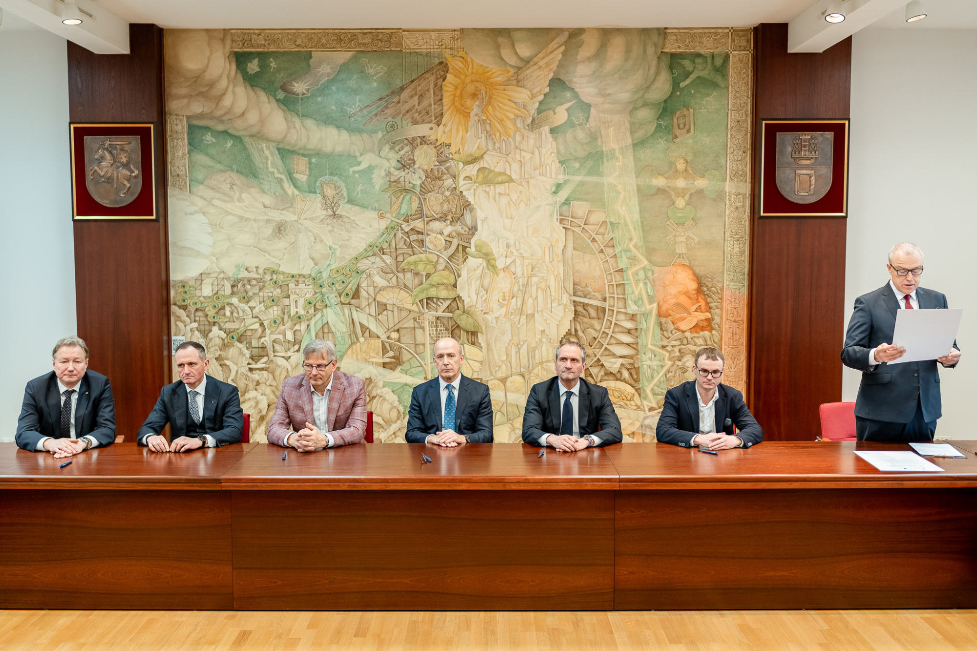 The text of the memorandum was signed by Egidijus Mockus, President of the Association of Klaipėda Industrialists, Arnoldas Šileika, President of the Association of Lithuanian Shipbuilders and Repairmen, Vaidotas Šileika, President of the Association of Lithuanian Stevedoring Companies, Vytautas Lygnugaris, Chairman of the Board of the Lithuanian Shipowners' Association, Andrius Sutnikas, Coordinator of the Lithuanian Maritime Cluster, and prof. dr. Artūras Razbadauskas, Rector of Klaipėda University.