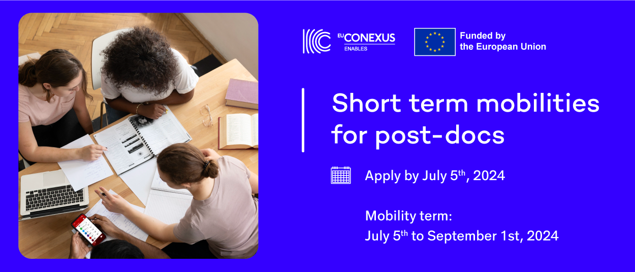 Applications are open on the EU-CONEXUS MSCA Post-Doctoral Fellowship Programme 2024 website until July 5th. Mobilities must be completed by September 1st.