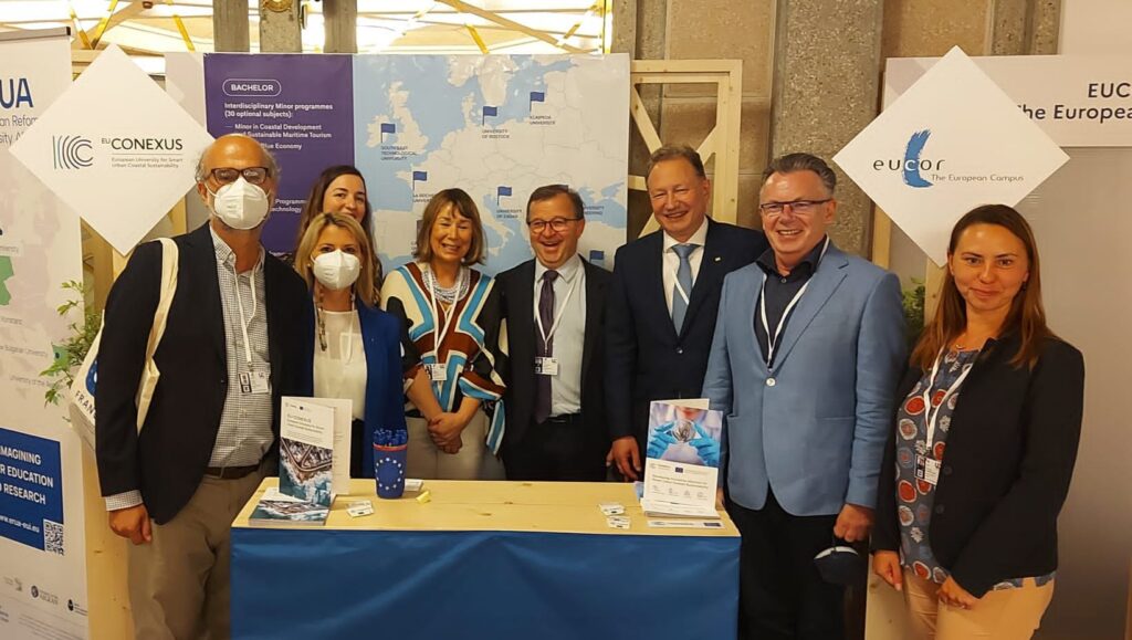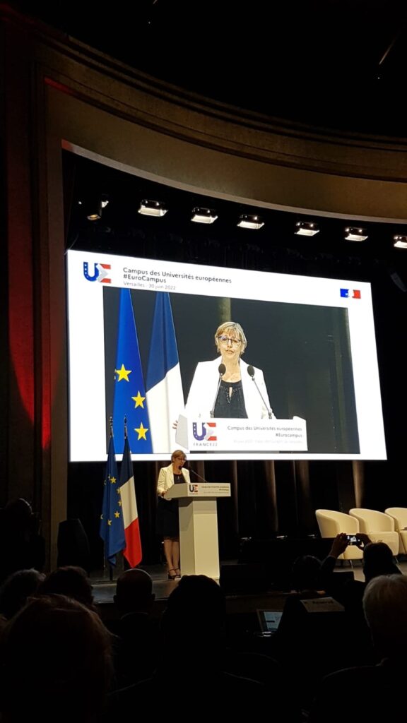 The EU-CONEXUS delegation took part in the meeting of the Rectors of European university alliances held yesterday in Versailles. On the Campus of European Universities, Klaipeda University Rector, Arturas Razbadauskas, was one of five panel speakers in Workshop C, presenting EU-CONEXUS within the theme “Role models for the transformation of European higher education”. Specifically, he addressed the impact of transnational cooperation carried out by European University alliances at three complementary levels: a. For the benefit of European students; b. For the development of institutional strategies; and c. for the modernization of national systems of education.