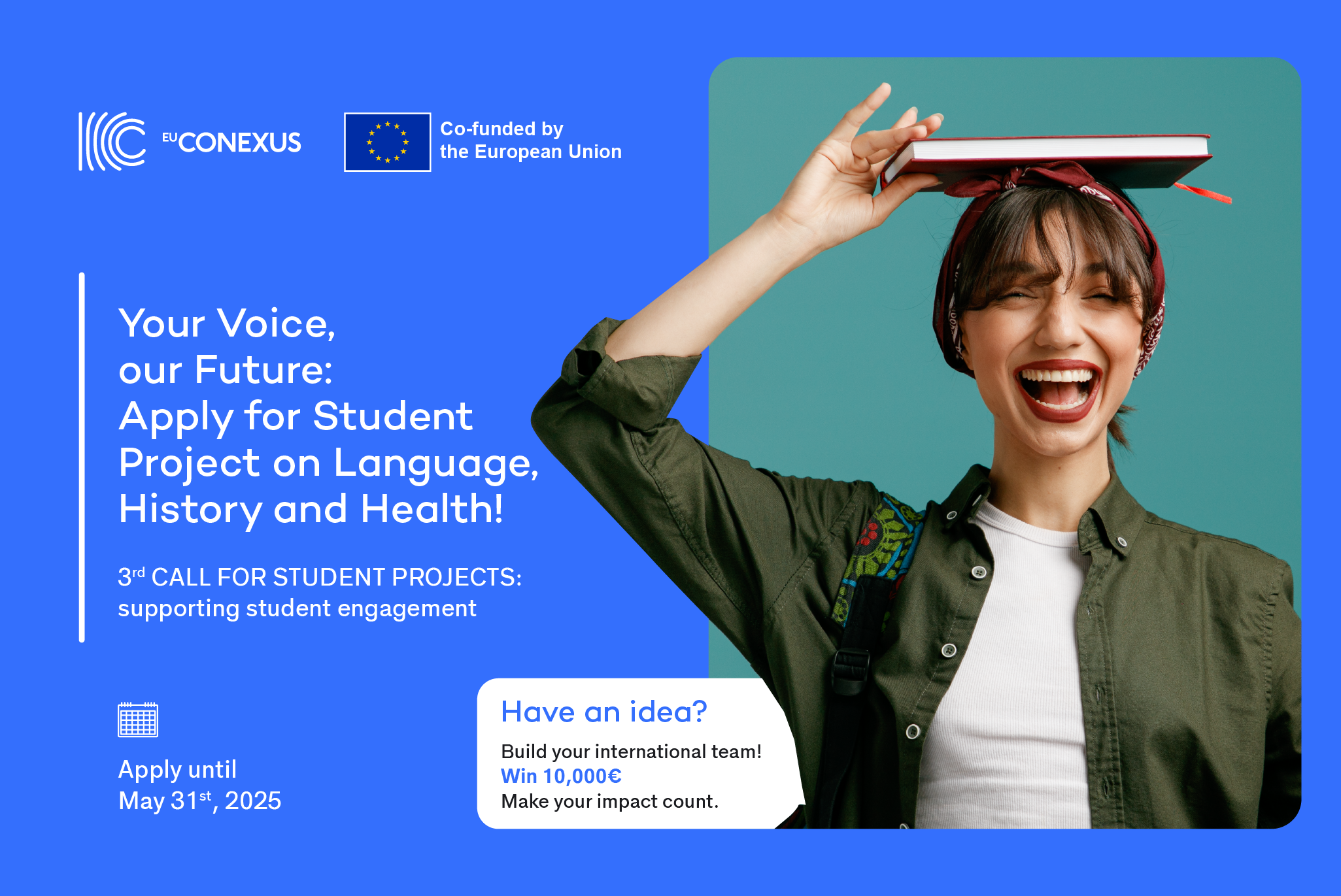 All students from EU-CONEXUS universities can submit applications. Each project team must consist of at least three students from different EU-CONEXUS universities.