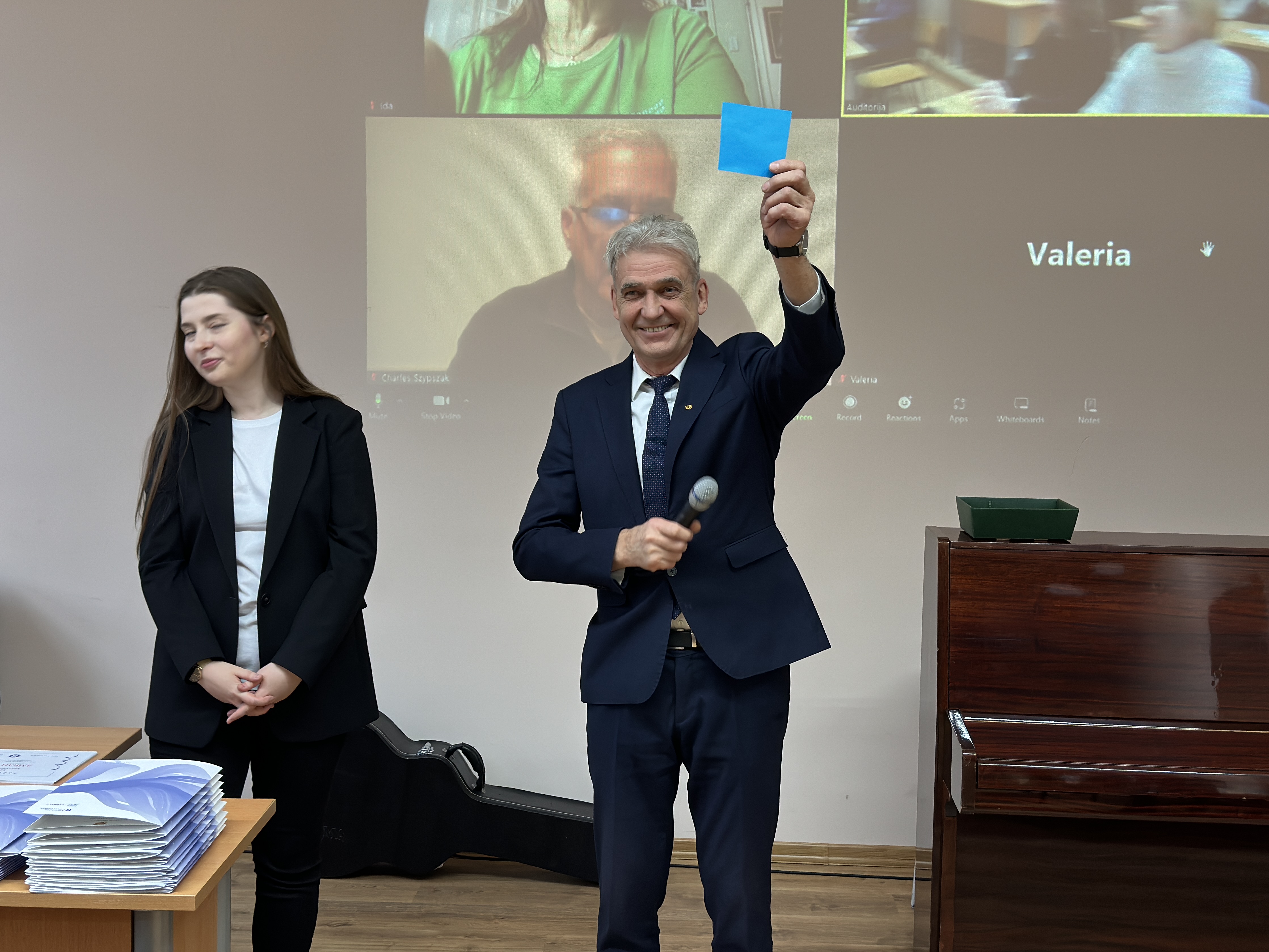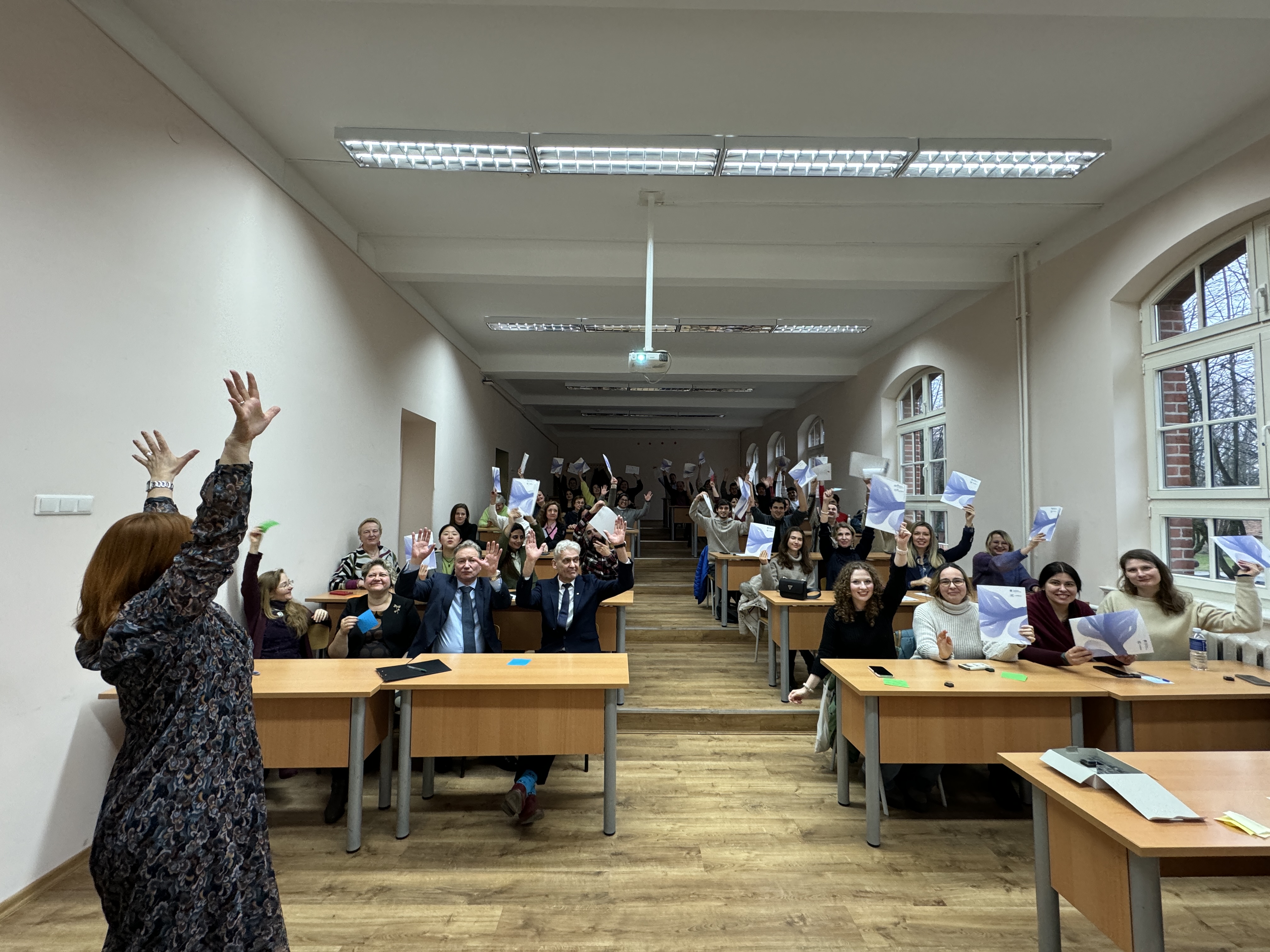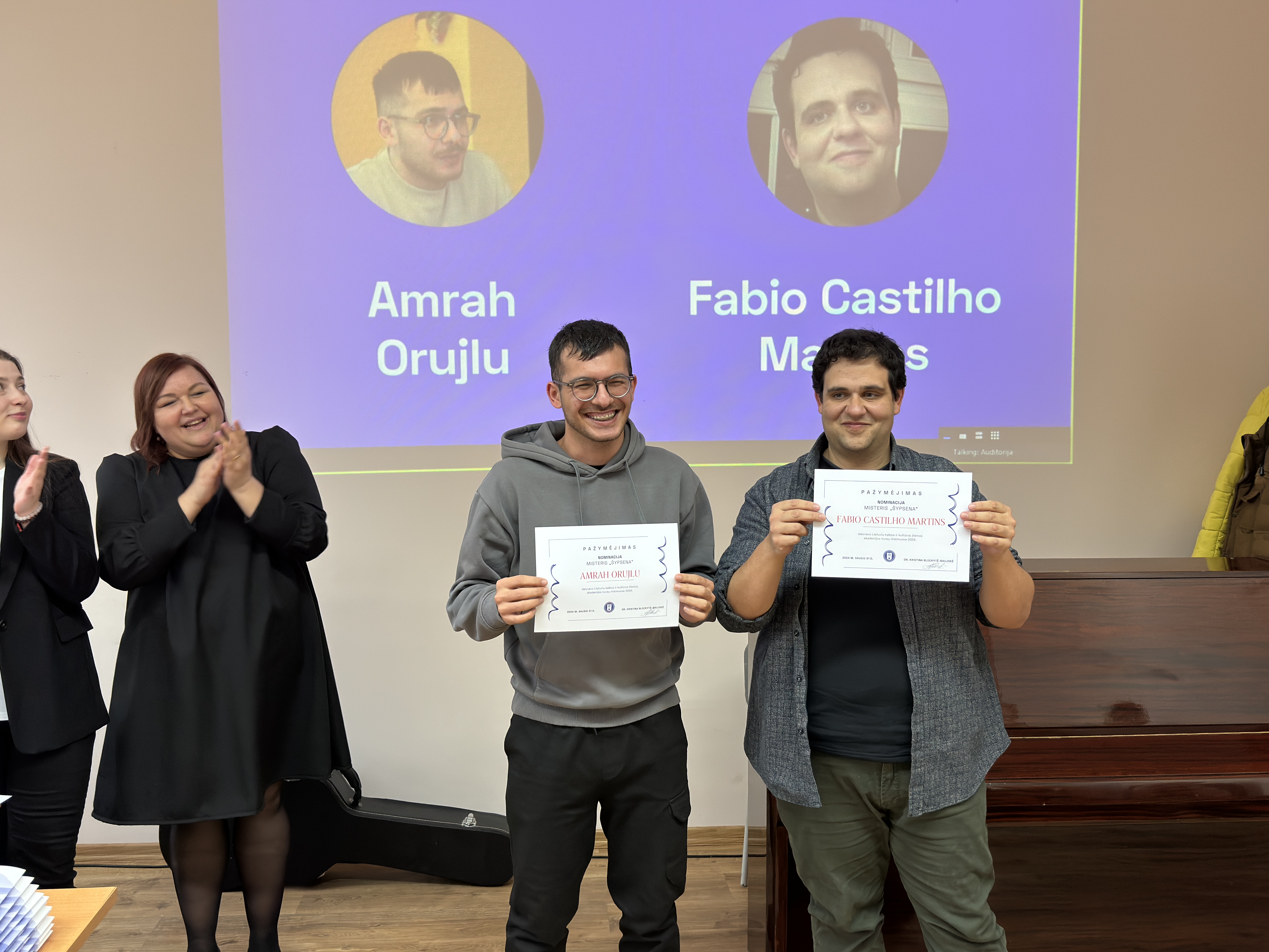 At the closing ceremony, the graduating cohort was congratulated by Rector of Klaipėda University prof. dr. Artūras Razbadauskas, Dean of the Faculty of Social Sciences and Humanities prof. Rimantas Balsys, and the head of the Centre of Lithuanian and Foreign Languages, the course coordinator dr. Kristina Blockytė-Naujokė. The Winter Academy graduation celebration was full of laughter, smiles, and hugs, and the "cherry on the cake" was the song by prof. Rimantas Balsys. The song united all the participants into a unified community.