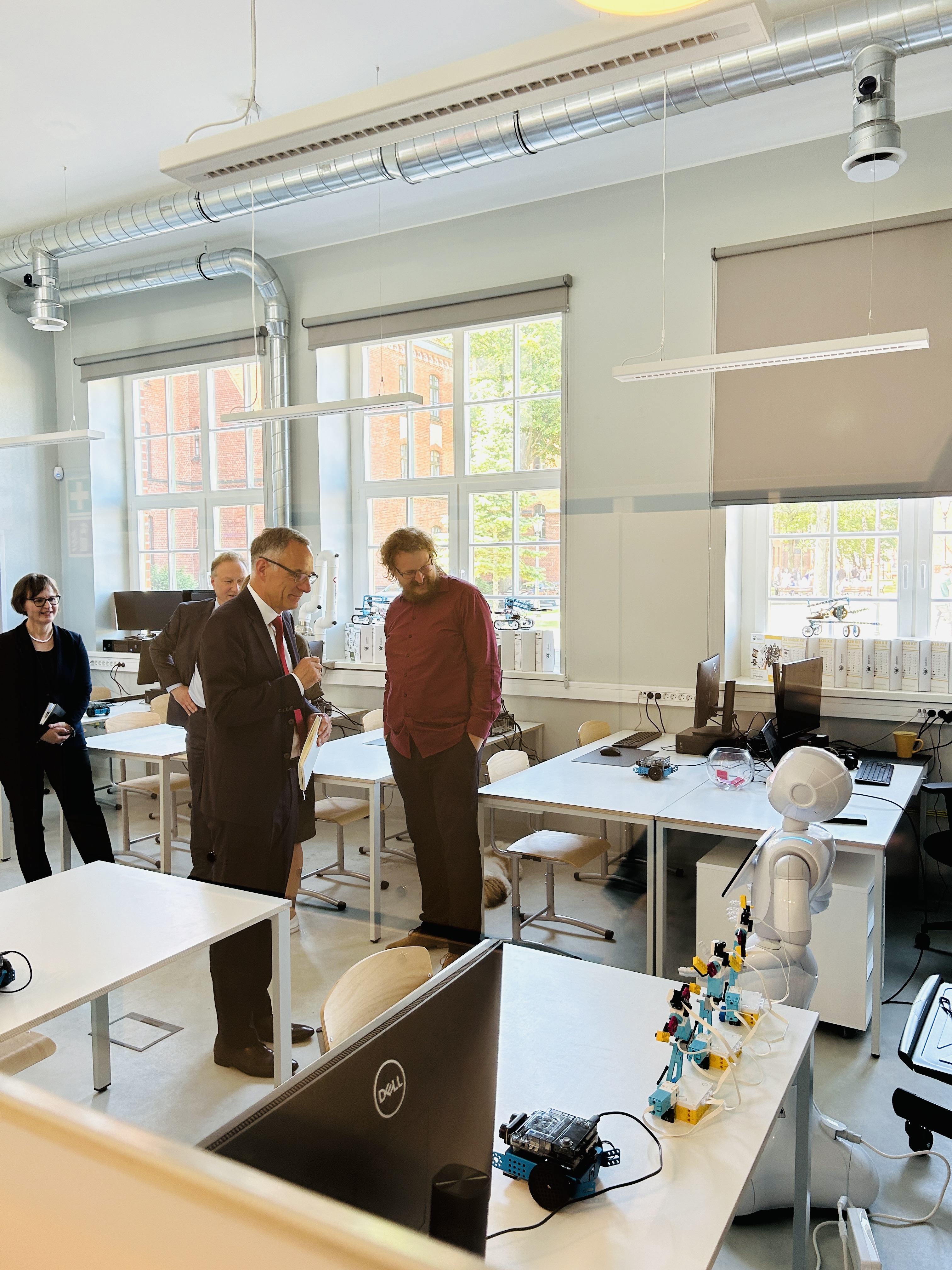 The ambassador also visited the newly opened methodological STEAM center and its laboratories. He was also impressed by the strong KU team, which won first place in the beginners’ group at the national stage of the World Robot Olympiad (WRO), and will go on to the international finals in Turkey. The ambassador was very enthused by the humanoid robot, Pipiras. The ambassador was also impressed by the center’s innovative resources.