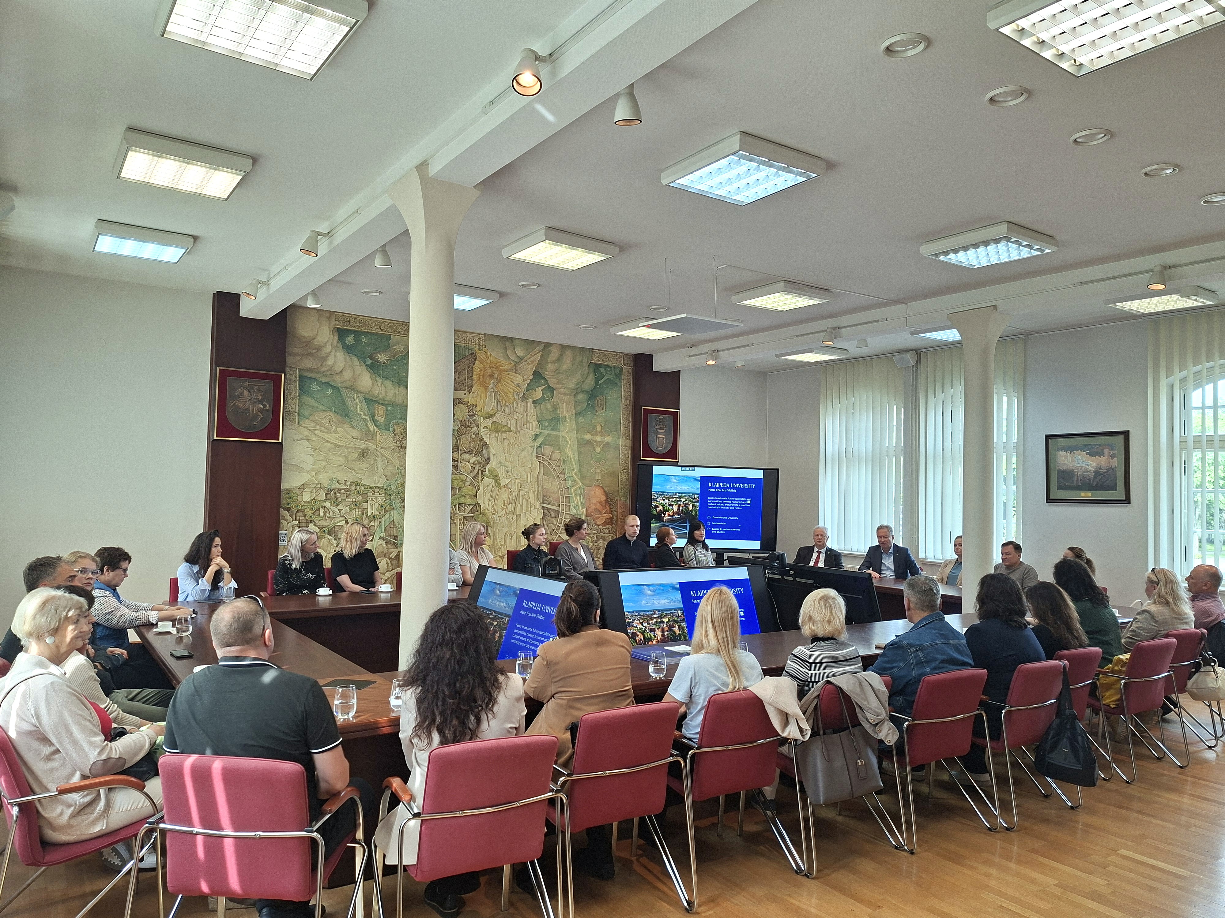 During the meeting, KU Rector Prof. Dr. Artūras Razbadauskas introduced the guests to the university’s operational priorities, academic strengths, and strategic goals. He highlighted KU’s role as a university-level research center focused on marine topics, playing a key role in driving innovation, developing talent, and fostering partnerships with industry.
