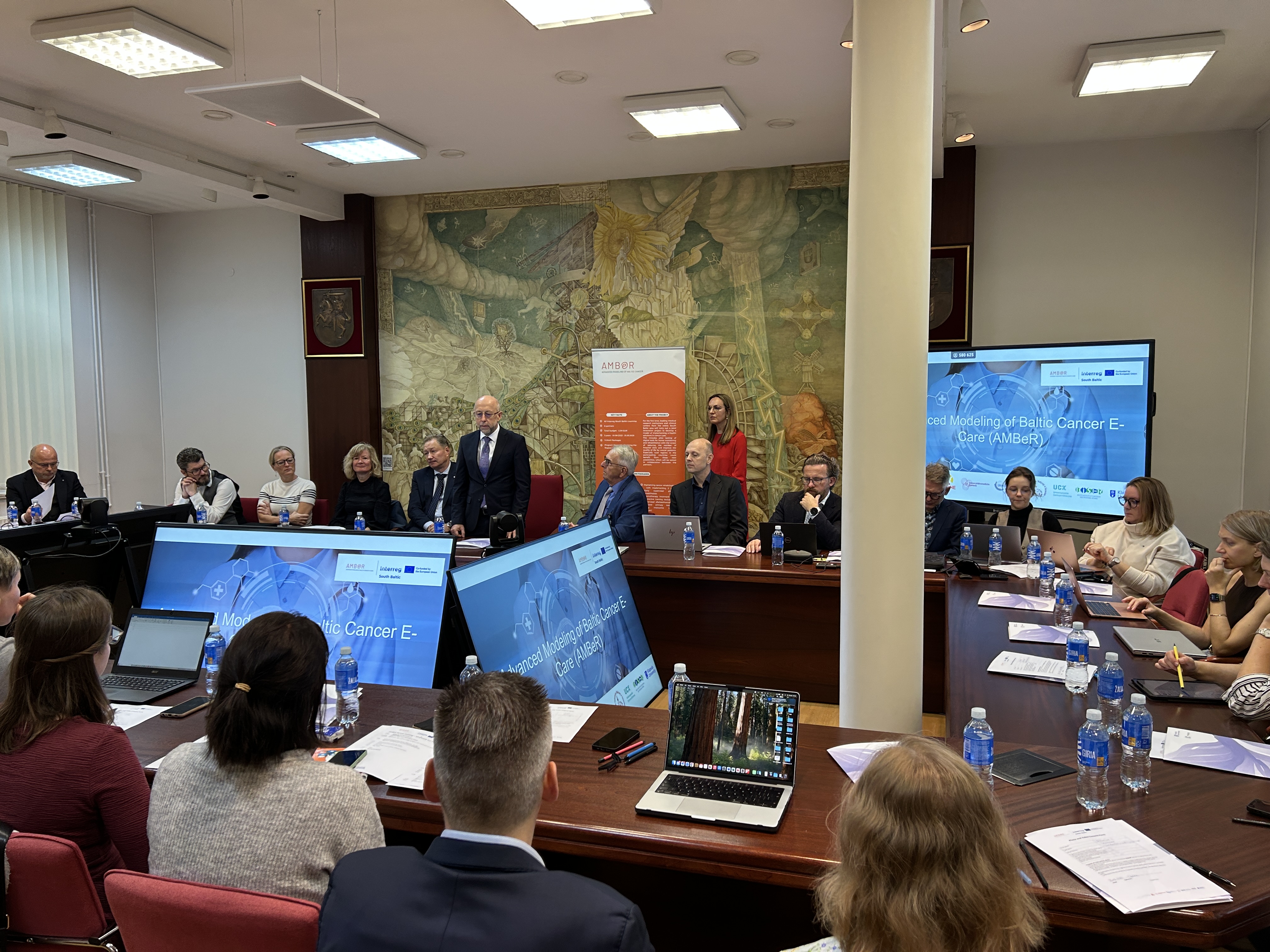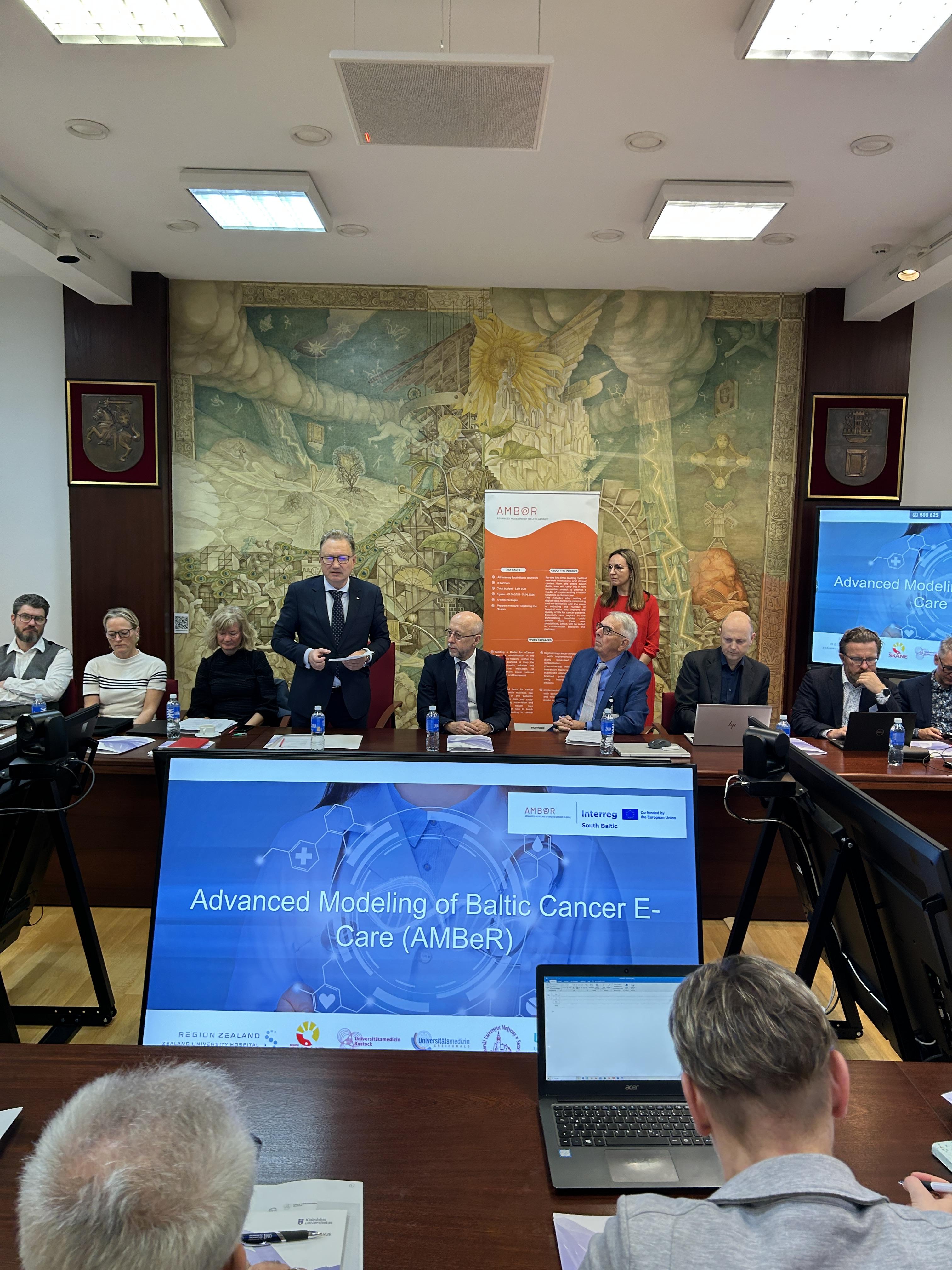 Last week, during the AMBeR (Advanced Modeling of Baltic Cancer E-Care) project partners' meeting at Klaipeda University, which was also attended by the Klaipeda University Rector Prof. Dr. Artūras Razbadauskas, and the General Director of Klaipeda University Hospital Dr. Audrius Šimaitis, the progress of the innovation project was discussed. While the research protocol has been already collaboratively developed, the physical activity program for oncology patients is underway.