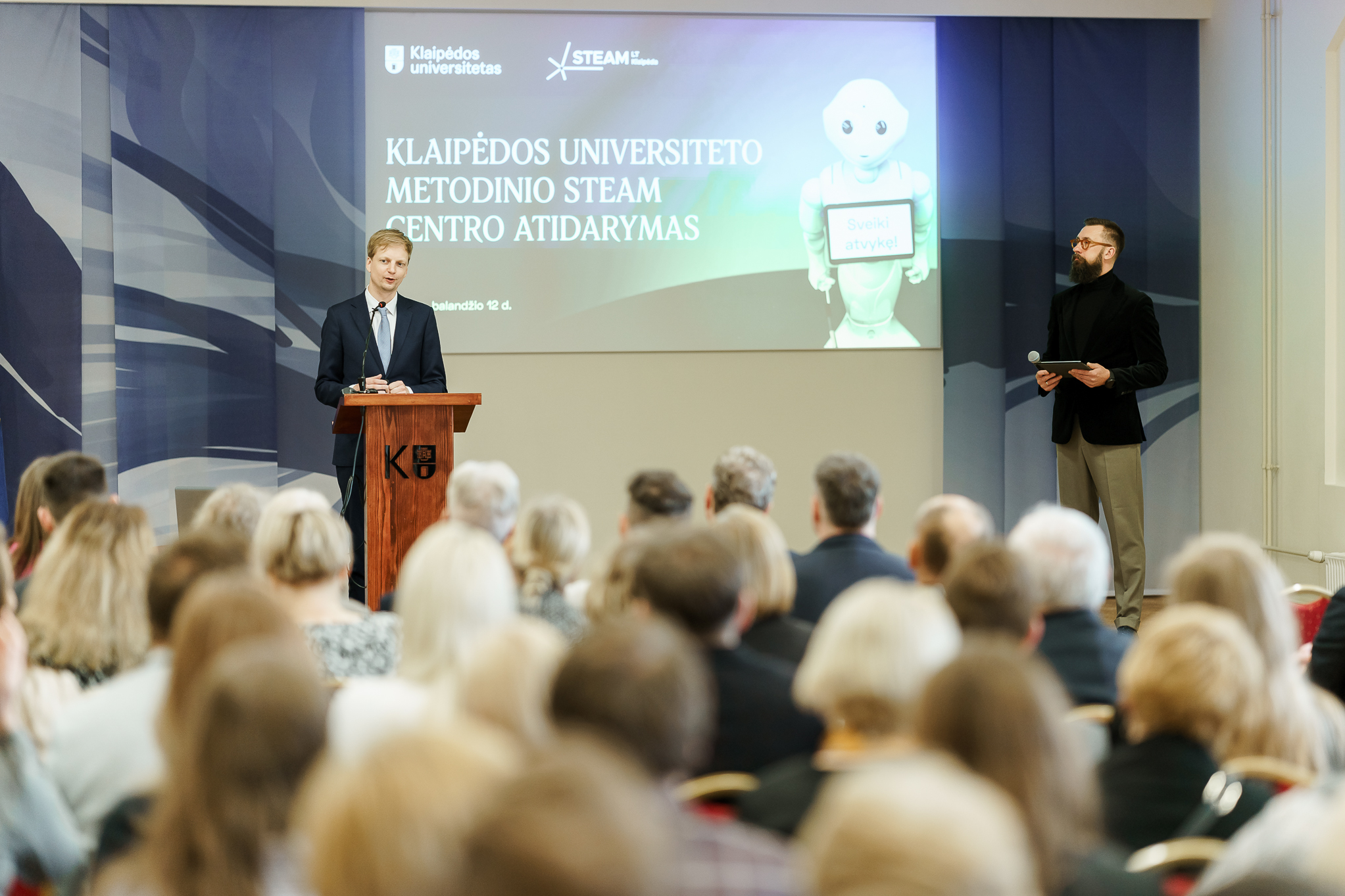 The opening ceremony was attended by Klaipėda City leaders, representatives of the business community, guests from the municipalities of the Western Lithuanian Region, and employees of the education system. According to Prof. Dr. Artūras Razbadauskas, Rector of KU, educators are particularly important partners of the new Center team. “We will strive to provide them with additional competences and instruments to guide young people towards creative development that transcends disciplinary boundaries,” says the Rector of KU.