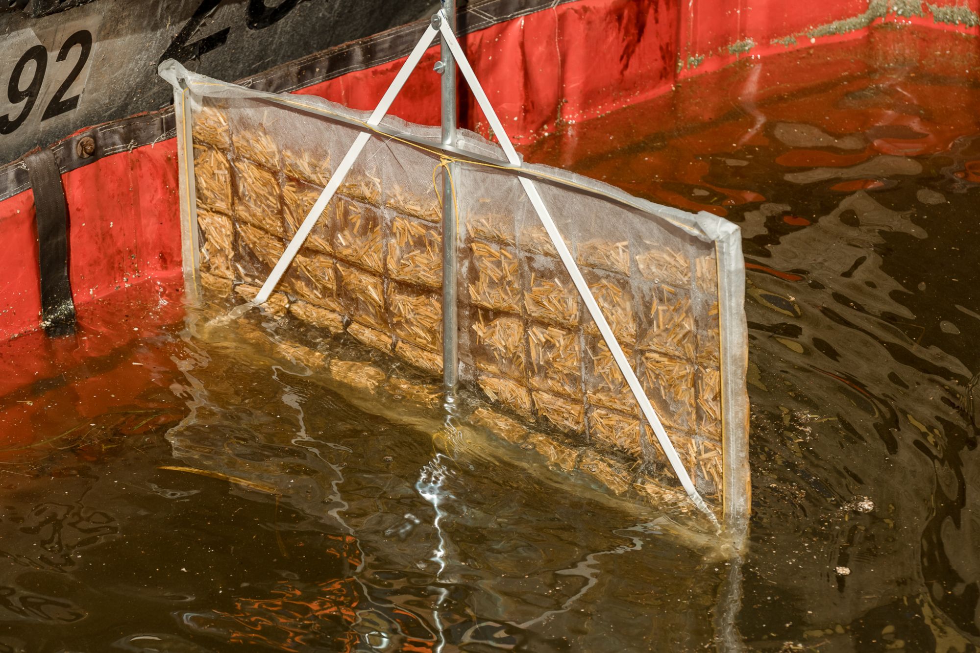 The uniqueness of the innovation that successfully passed the test in the scientific research laboratory this spring is that oil products spilled into waters are neutralised using a sorbent of natural origin –hydrophobised straw with oil-degrading microorganisms extracted from the environment of the Baltic Sea. This is an environmentally friendly technology, created using inexpensive, natural materials. The technology has already been patented in Lithuania, and KU has submitted a priority application to the European Patent Office.