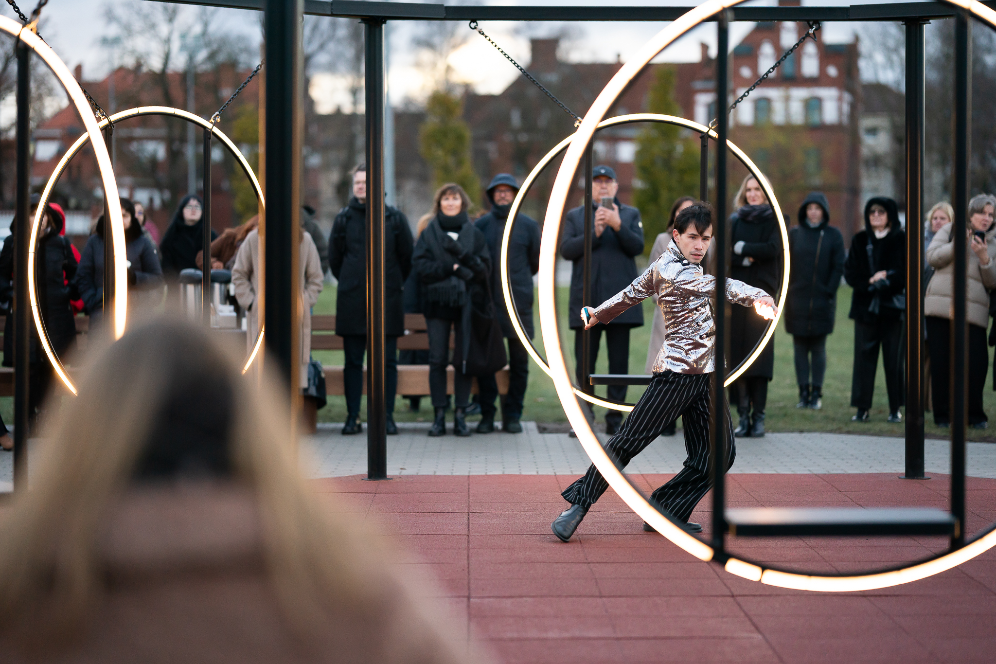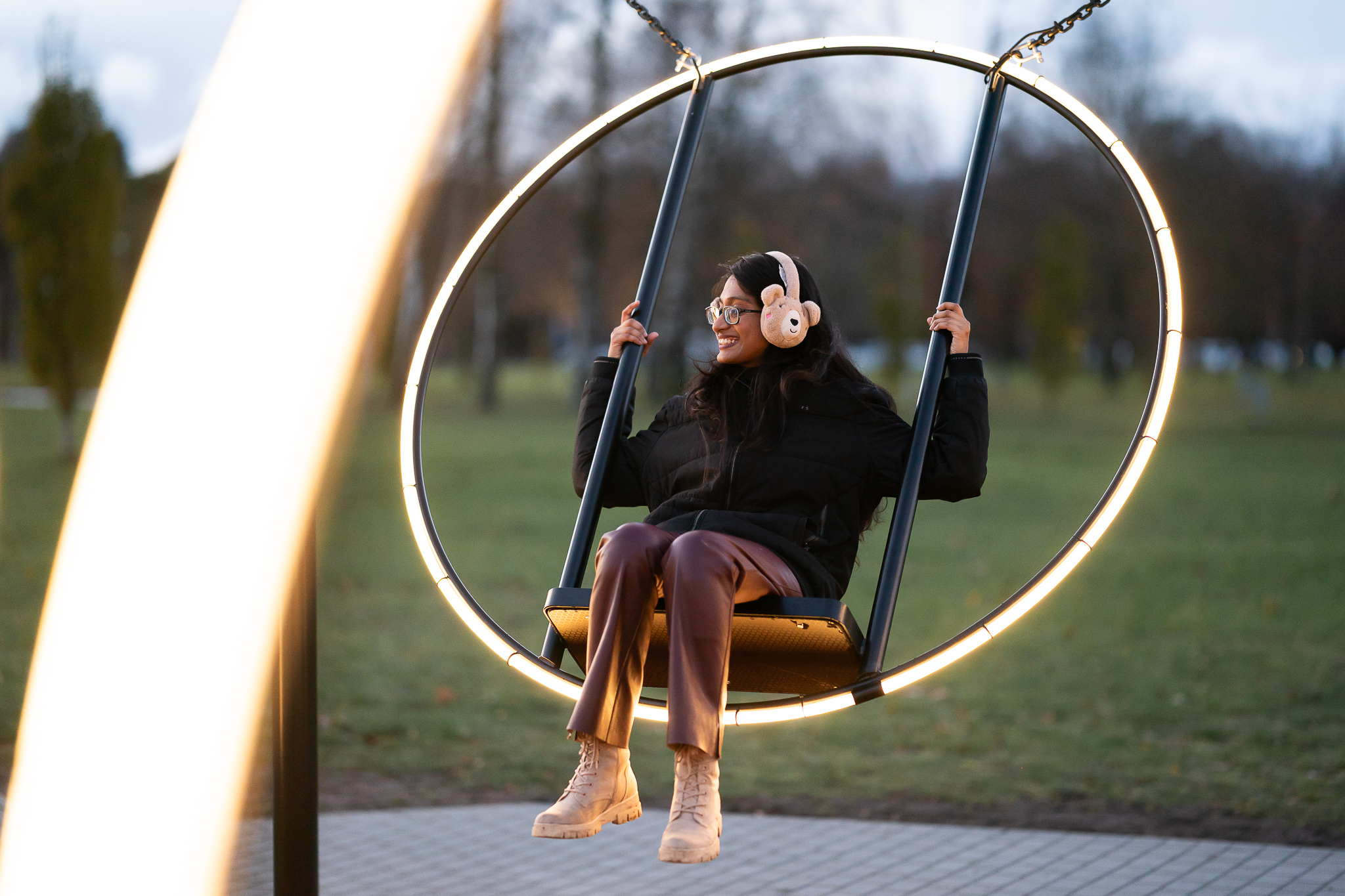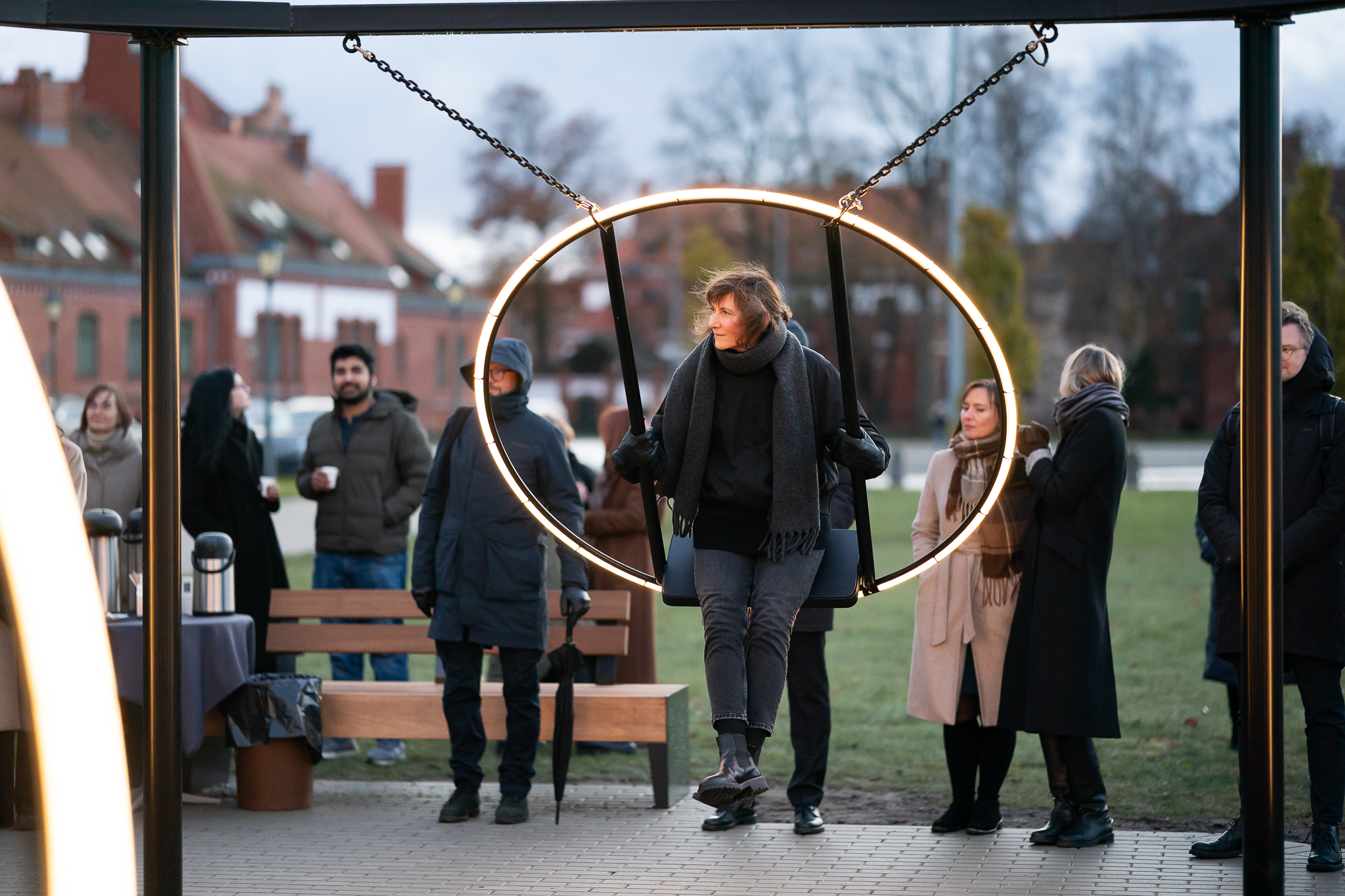 It is hoped that the new installation will become an attraction not only for the KU community, but also for Klaipėda residents and visitors to the city. This composition of eight illuminated swings invites people to experience the light of togetherness and the joy of creativity, offering a wonderful space for meetings, conversations, and perhaps even inspiration for new ideas.