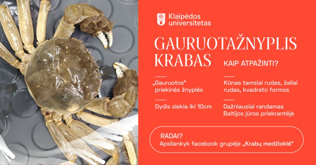 In order to spread the word about the exotic species of crabs and involve local residents and visitors to the seacoast in scientific research, the scientists of the Marine Research Institute of Klaipėda University are announcing a campaign: find a crab and contribute to the research of non-indigenous species in Lithuania! The start of crab hunting is announced on July 6.