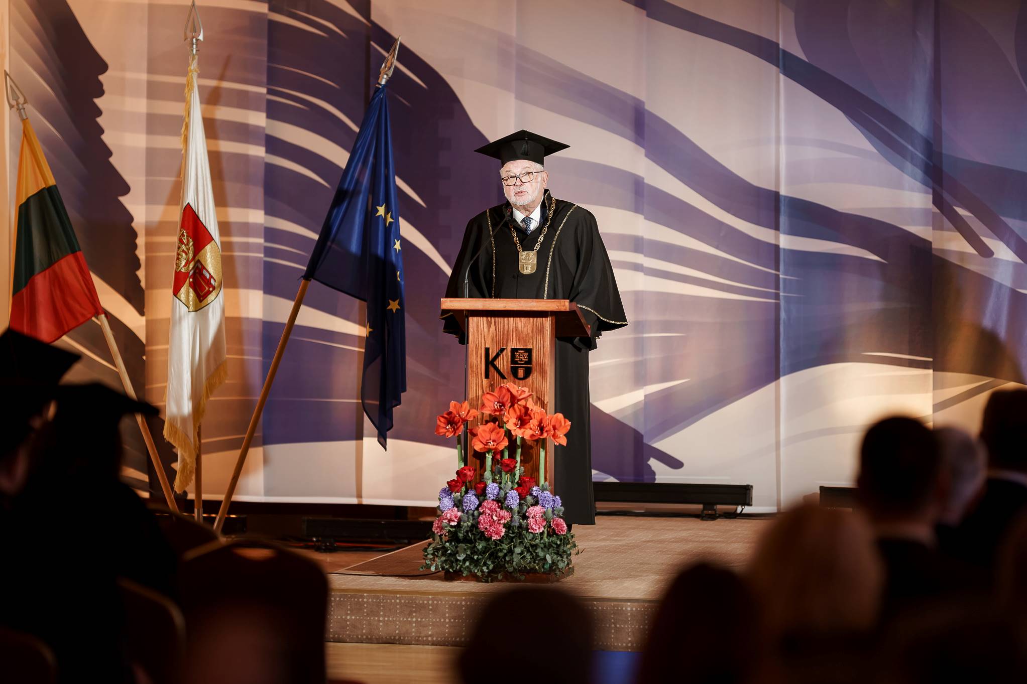 “We are delighted that the KU family has grown. A scientist with a vast and rich experience has joined it as a member of full standing. Let us be selfish and hope that professor’s knowledge of biotechnology and the laws of international business will enrich all of us – scientists and teachers, who create progress and raise the younger generation,” Prof. Dr. Artūras Razbadauskas, the Rector of the University, greeted KU’s Honorary Doctor.