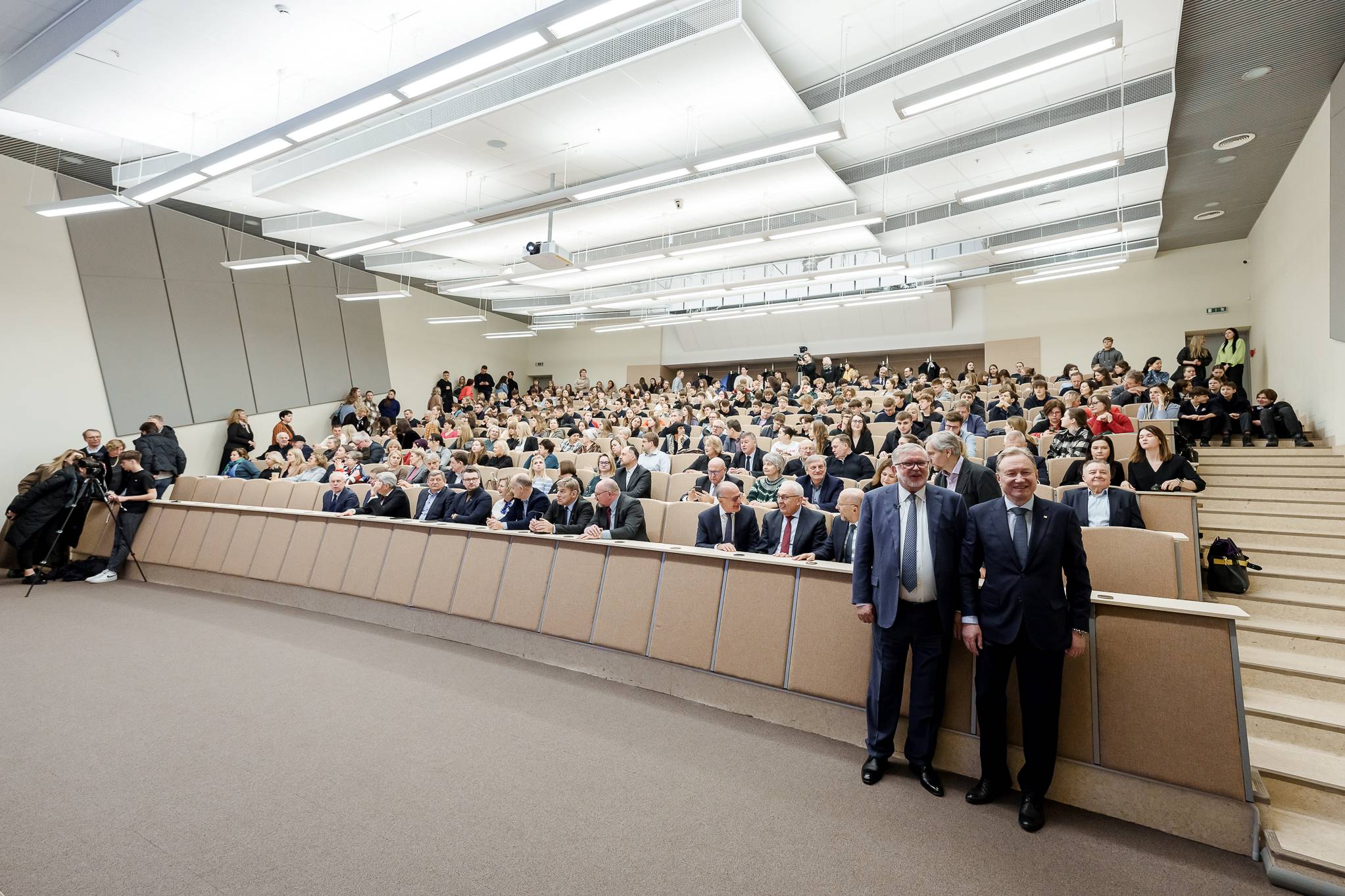 The eminent scientists or public figures honored by KU are publicly presented to the city and the KU community in accordance with the long-established tradition. Before the honors regalia ceremony, Prof. Dr. habil. V. A. Bumelis gave a lecture on the Development of the Biotechnology Industry in Lithuania. He also gave an overview of his own path: from a scientist-innovator to a successful international business development specialist.