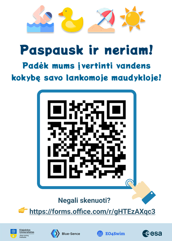 An automated bathing water quality assessment tool is being developed under the European Space Agency’s EO4Swim project. This tool integrates satellite and drone imagery, field survey data, and machine learning algorithms. This system will enable rapid forecasting of biological risks and real-time notification of residents and responsible authorities. “The system we are developing will, for the first time in Lithuania, enable real-time assessment of the biological risks associated with blue-green algae blooms in various water bodies. This information will be available not only to specialists, but also to everyone – decisions on safety will be based on facts, not guesswork,” says Dr. Diana Vaičiūtė, head of research at Klaipeda University. |