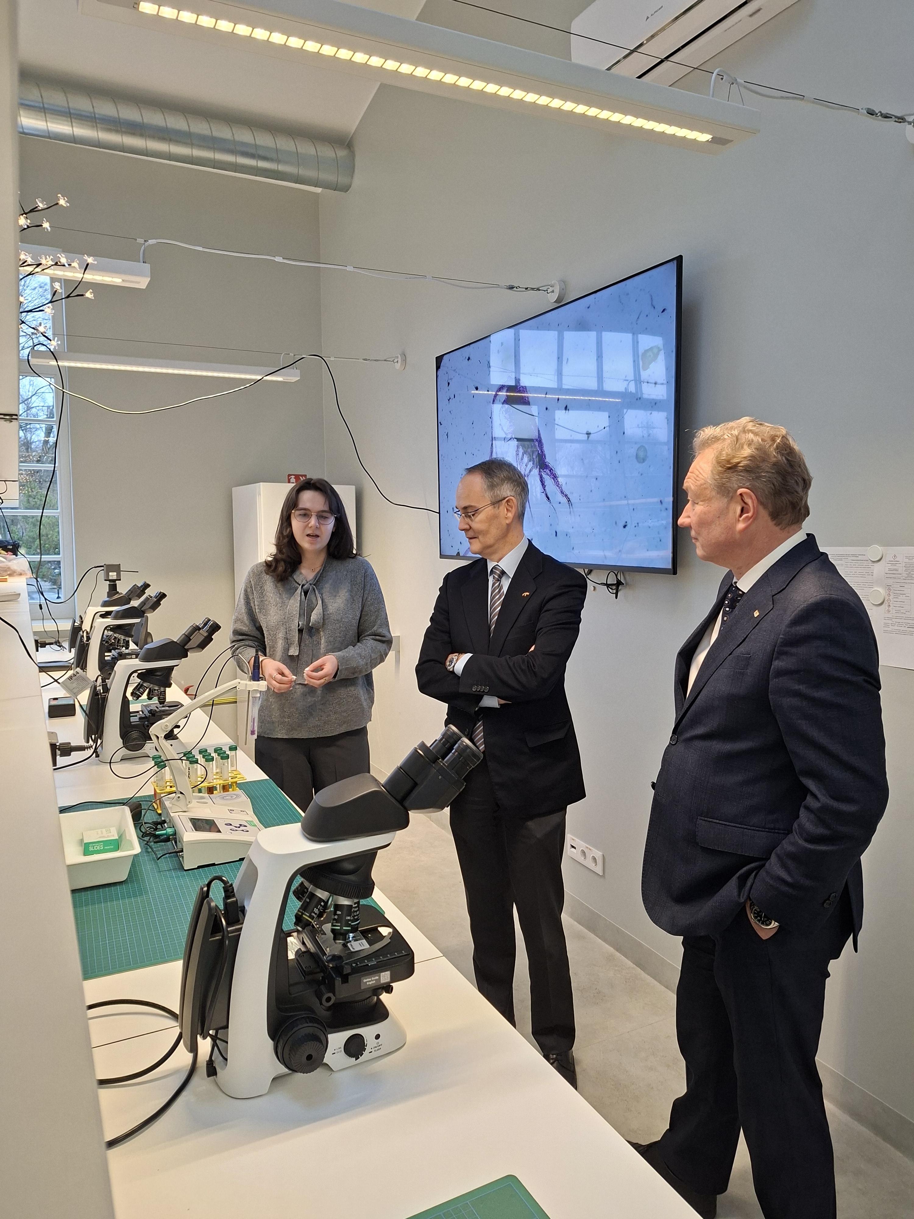 Following the meeting at the Rector’s Office, the ambassador visited the Klaipeda University campus and the KU STEAM Center, where he was introduced to modern laboratories and learning environments. After the tour, the ambassador expressed his appreciation for the university’s infrastructure and the diversity of activities. Speaking about STEAM education, he recalled nostalgically that during his school years such practical learning environments did not exist and that most knowledge was acquired only from textbooks. H.E. José Fernando Fernández-Aguayo Muñoz emphasized that today’s young people are provided with unique opportunities to learn, explore, and create in real laboratories, which strengthens their motivation to pursue science and technology.