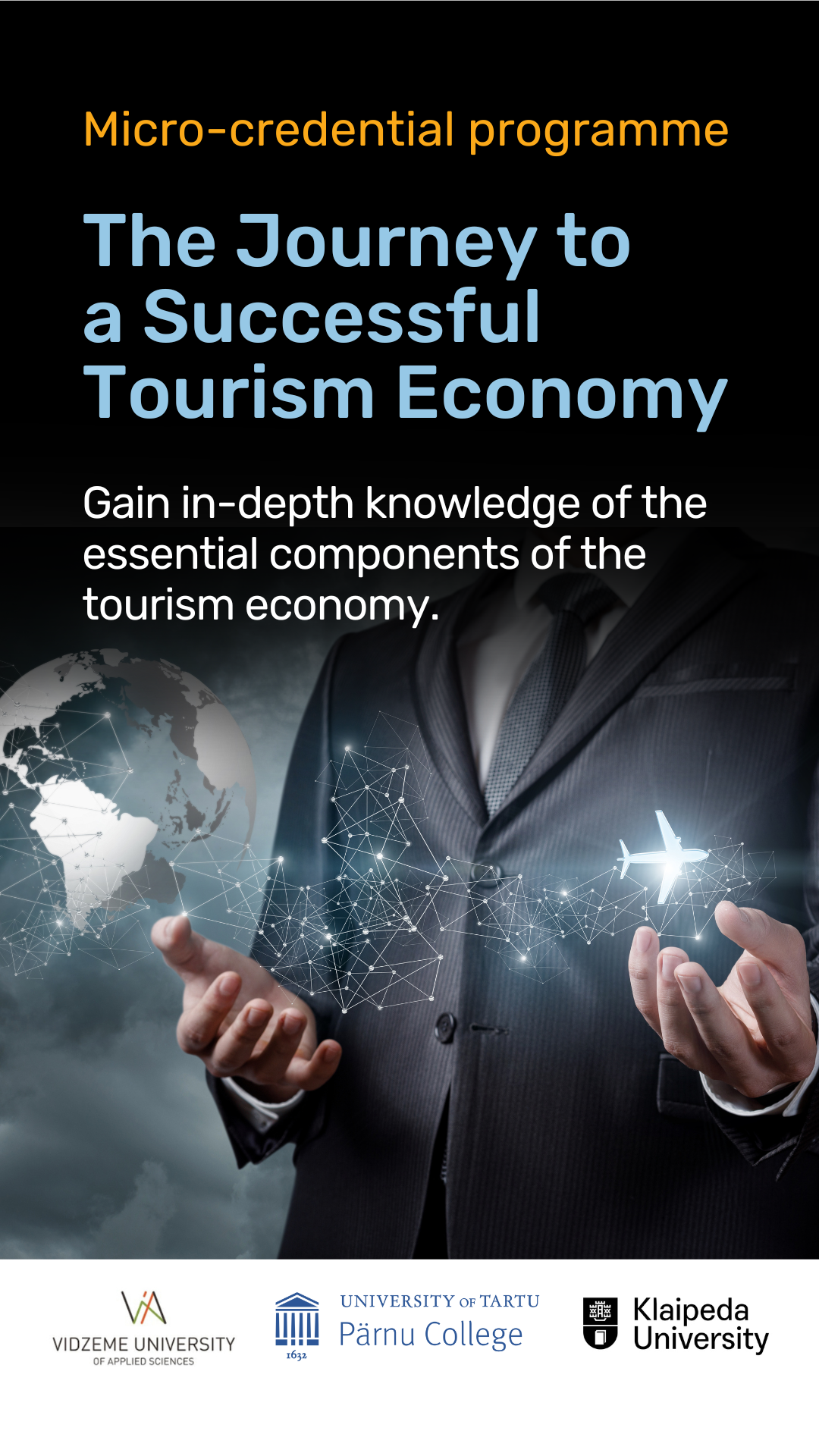 The aim of the program is to provide current and future tourism workers with the knowledge and skills necessary to improve the competitiveness and sustainability of tourism businesses and destinations using innovative approaches. This is a joint microdegree program by the University of Tartu Pärnu College (Estonia), Klaipeda University, and Vidzeme University of Applied Sciences (Latvia).