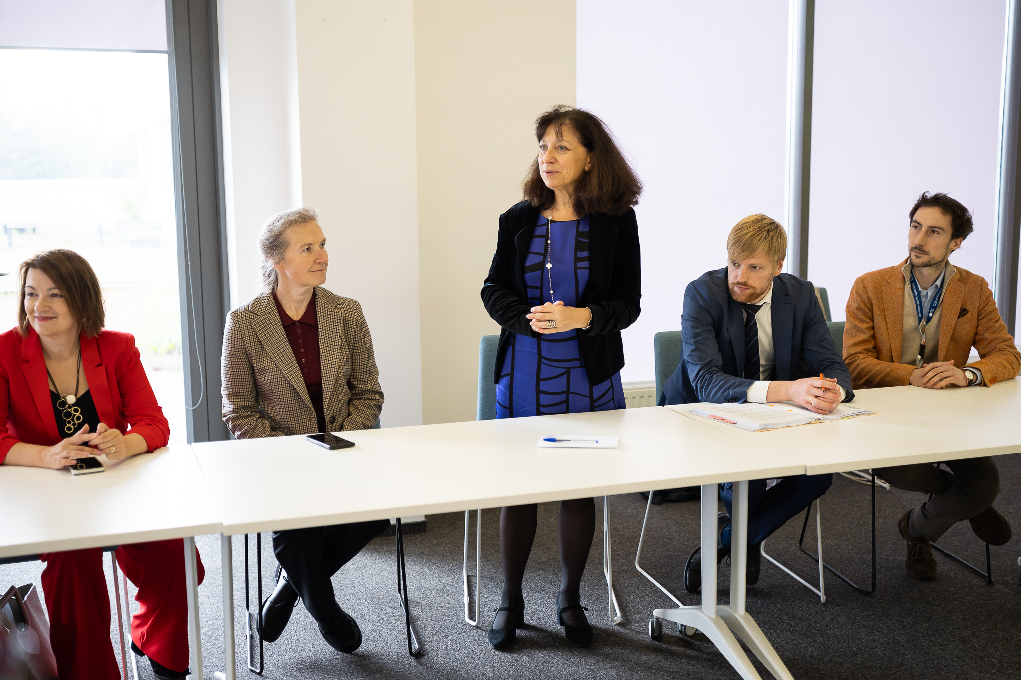 Vizito KU metu viešnios apžiūrėjo Pajūrio aplinkos ir biogeochemijos laboratoriją, kur dr. Mindaugo Žiliaus vadovaujama komanda tiria pakrančių ekosistemų procesus, atlieka paviršinio vandens ir nuotekų analizes, mikroteršalų bei biologinės įvairovės tyrimus. Žuvininkystės ir akvakultūros laboratorijoje dr. Nerijus Nika pristatė krevečių auginimo infrastruktūrą ir kuriamas technologijas. Vėliau vyko neformali diskusija su Jūros tyrimų instituto biologijos ir jūros biotechnologijos studentais apie jaunųjų tyrėjų įsitraukimą į mokslinių tyrimų grupes, tinklaveiką ir tarptautinių patirčių galimybes.