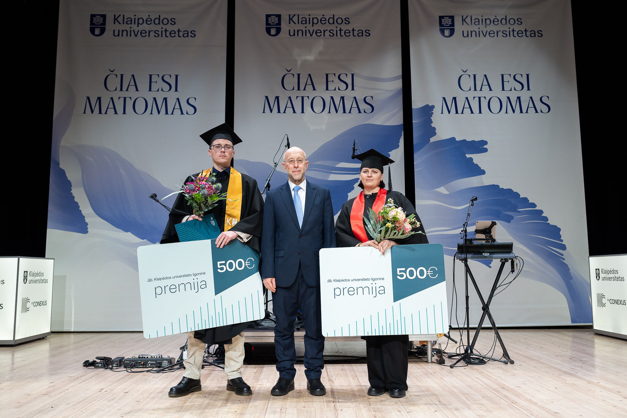 Sveikinimo kalboje Klaipėdos universiteto rektorius prof. dr. Artūras Razbadauskas pabrėžė, kad universitetas absolventams yra daugiau nei studijos – tai erdvė, kurioje kiekvienas studentas yra matomas per savo idėjas, pastangas ir augimą. Pasak rektoriaus, „Čia esi matomas“ – ne tik šių metų universiteto šūkis, bet ir principas, kuriuo grindžiamas artimesnis ryšys su dėstytojais, didesnis grįžtamasis ryšys bei realios galimybės studentams įsitraukti į projektus, praktikas, tyrimus ir tarptautines patirtis.