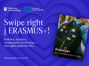 Kviečiame visus Klaipėdos universiteto studentus teikti paraiškas dalyvauti Erasmus+ programoje!