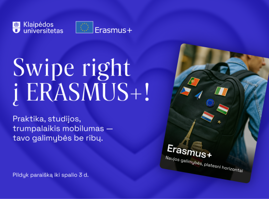 Skelbiama atranka Erasmus+ mobilumams dėstymo ir mokymosi tikslais 2025/2026 s. m. rudens semestre